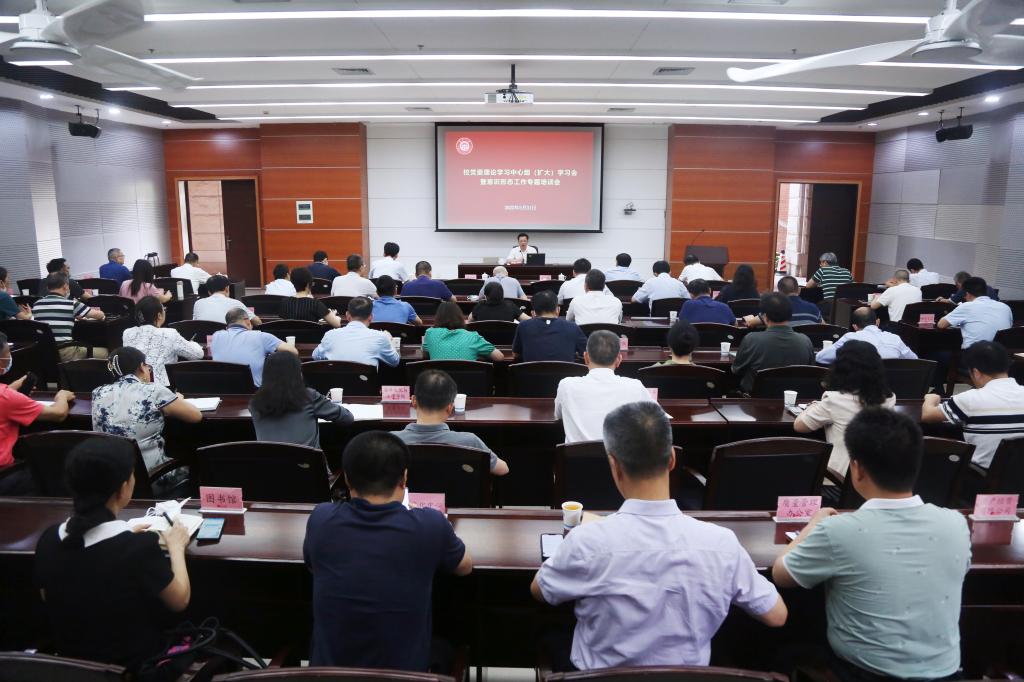 5月31日下午,我校召开校党委理论学习中心组(扩大)学习会。校党委理论学习中心组成员,机关各部处(含教辅机构、其他单位)主要负责人,各二级学院党委书记、院长参加了学习会。会议由校党委书记沈灿煌主持。
