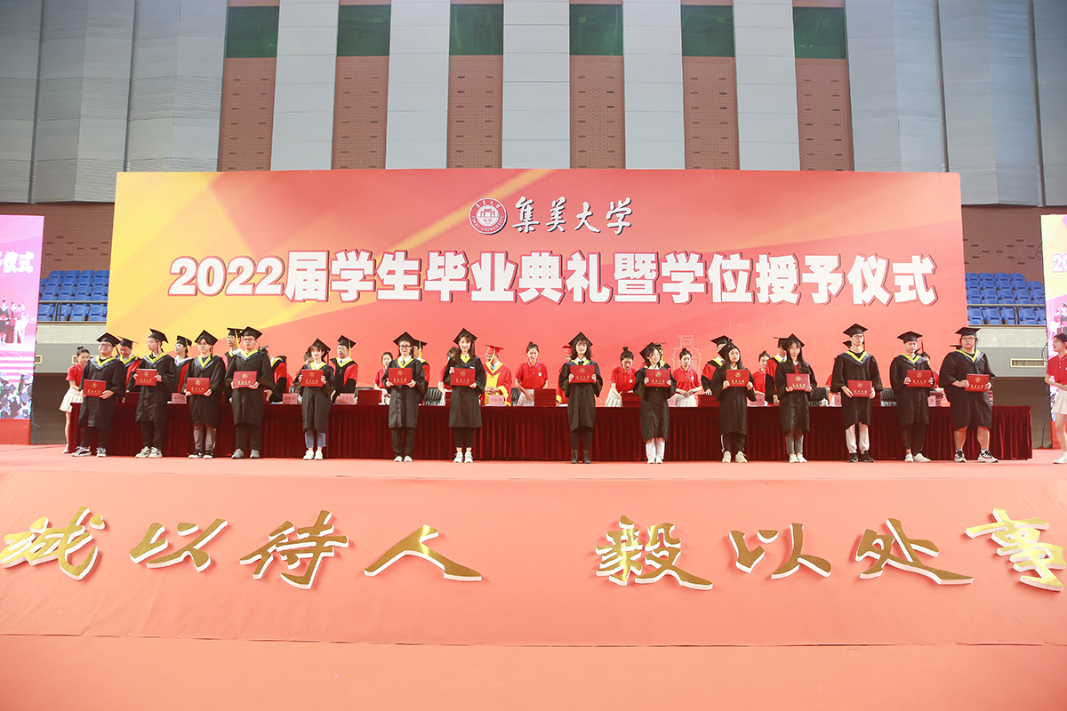 毕业生代表王以欣、马瑞声、曾文苑围绕“青春·奋进·担当”的主题,回顾了自己在集大的求学生涯、逐梦之旅,他们将坚定“诚以待人,毅以处事”的信念,保持热爱,全力以赴,在新时代的伟大征程中实现“小我”、成就“大我”、建功立业。