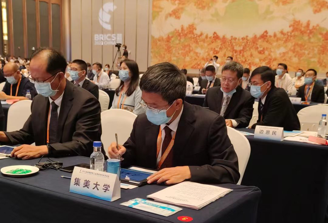 9月7日,2022金砖国家新工业革命伙伴关系论坛在厦门举办。福建省委书记尹力、福建省省长赵龙、工业和信息化部副部长辛国斌、厦门市委书记崔永辉、厦门市市长黄文辉、俄罗斯联邦工业和贸易部副部长阿列克谢·格鲁杰夫、巴西驻华大使高望等国际组织负责人现场或视频出席论坛并致辞,论坛由福建省副省长康涛主持。我校校长李清彪作为论坛项目签约仪式嘉宾应邀出席。