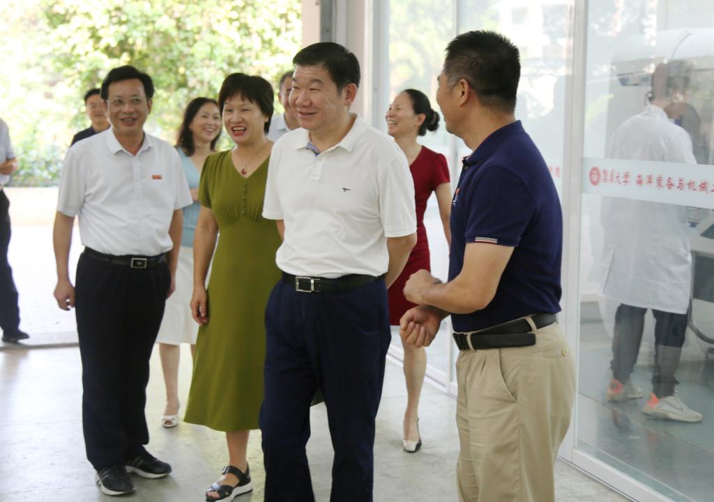 9月20日下午,厦门市科学技术局局长孔曙光一行到我校考察调研赵振业院士抗疲劳制造科研平台的建设情况。校党委书记沈灿煌参加考察并主持调研交流会。赵振业院士,厦门市科学技术局副局长黄慰萍、资配处、社科处、高新处负责人,我校科研处、海洋装备与机械工程学院相关负责人、科研平台团队主要成员陪同考察调研。
