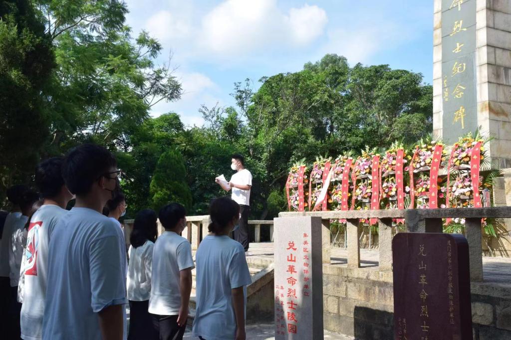 同日,我校还组织团学干部代表到集美兑山革命烈士陵园、基石广场、严力宾烈士纪念园等举行祭扫,并开展相关主题团日活动。仪式上,同学们庄严肃立,深情鞠躬,向革命先烈敬献鲜花,深切缅怀致敬先辈,表达崇高敬意和追思之情。