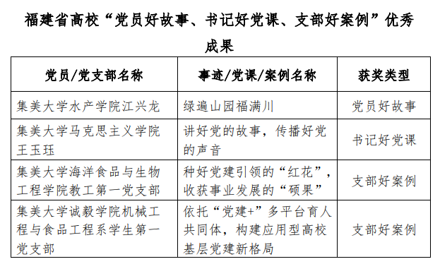 近日,省委教育工委公布了高校党支部工作“立项活动”优秀成果和“党员好故事、书记好党课、支部好案例”获奖名单,我校获党支部工作“立项活动”优秀成果一等奖1项、二等奖1项、三等奖2项;获评“党员好故事”1项、“书记好党课”1项、“支部好案例”2项。在获奖质量和获奖数量上均取得新突破,为近年最好成绩。
