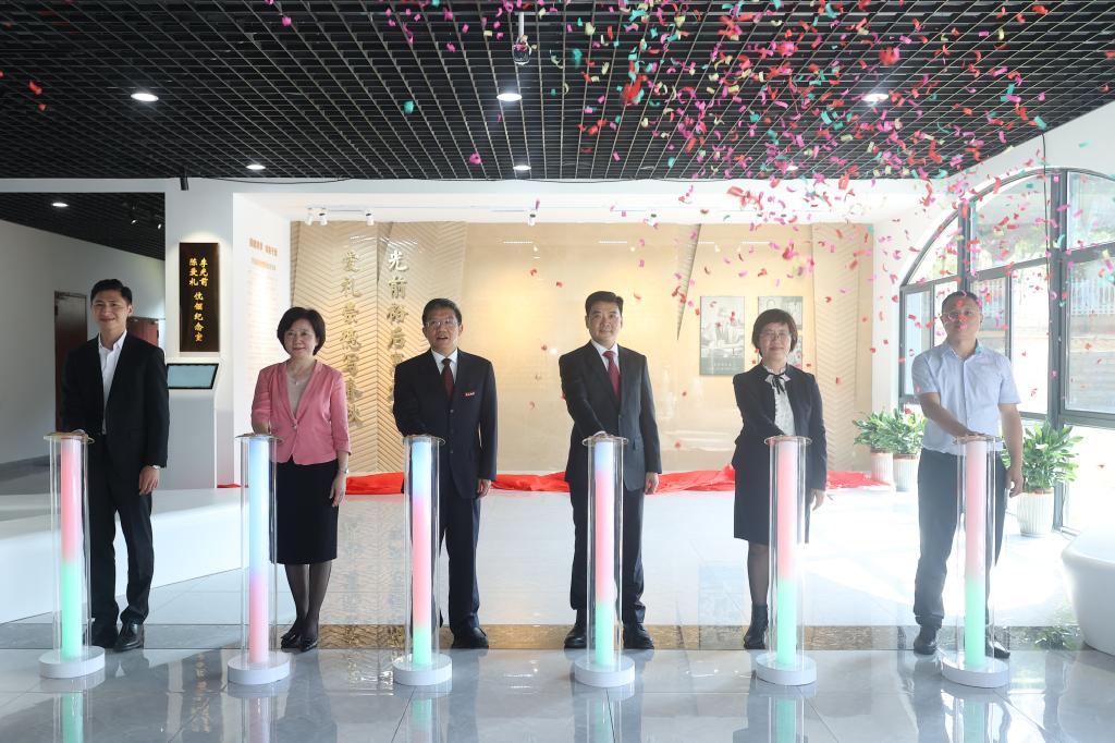 仪式上,校长李清彪与嘉宾、校友共同为爱礼楼落成启用点亮水晶球,并为“李光前、陈爱礼伉俪纪念室”揭牌。