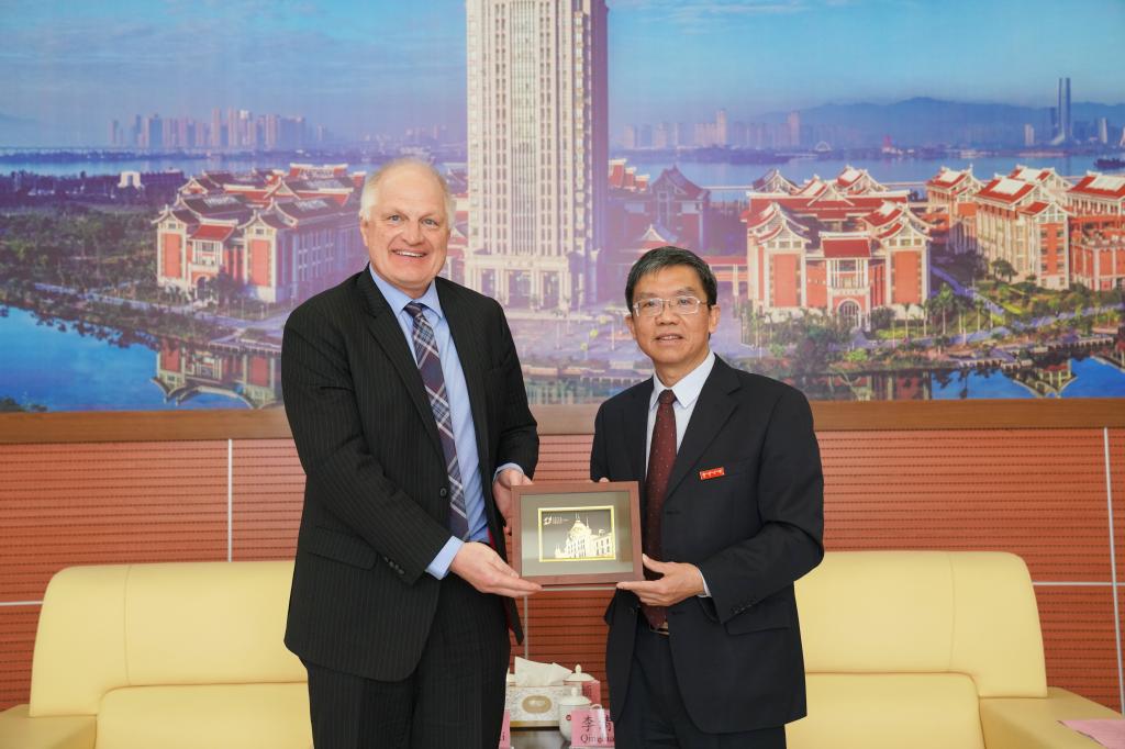 李清彪向客人介绍了学校的创办历史、发展沿革与国际化办学情况,希望双方进一步在师生交流、人员互访、学科建设等领域开展务实合作,落实推动合作项目,实现优势互补,促进共同发展与进步。