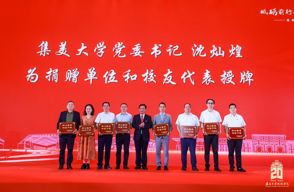 大会举行捐赠授牌仪式和“南顺诚毅奖教金”颁奖仪式,校党委书记沈灿煌为捐赠单位和校友代表授牌并合影留念,校党委副书记郑志谦为奖教金获得者颁奖并合影留念。