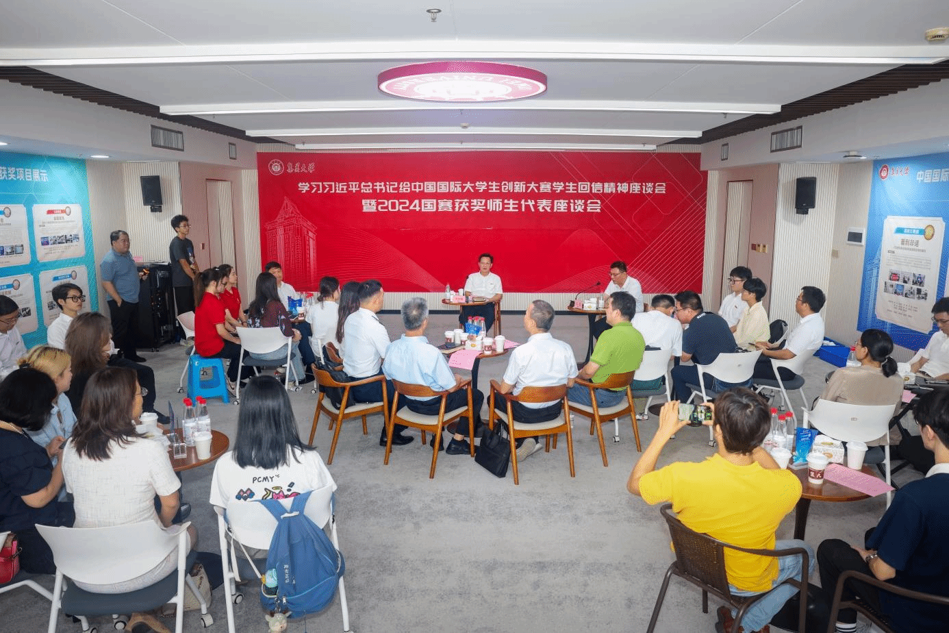 11月13日下午,我校召开学习贯彻习近平总书记给中国国际大学生创新大赛参赛学生代表重要回信精神师生座谈会。校党委书记沈灿煌、副校长王建,我校在中国国际大学生创新大赛(2024)和第十四届“挑战杯”创业计划竞赛国赛中获奖的师生代表,学生工作部、教务处、研究生院、科研处、校团委、创新创业中心等部门以及相关学院负责人参加座谈。