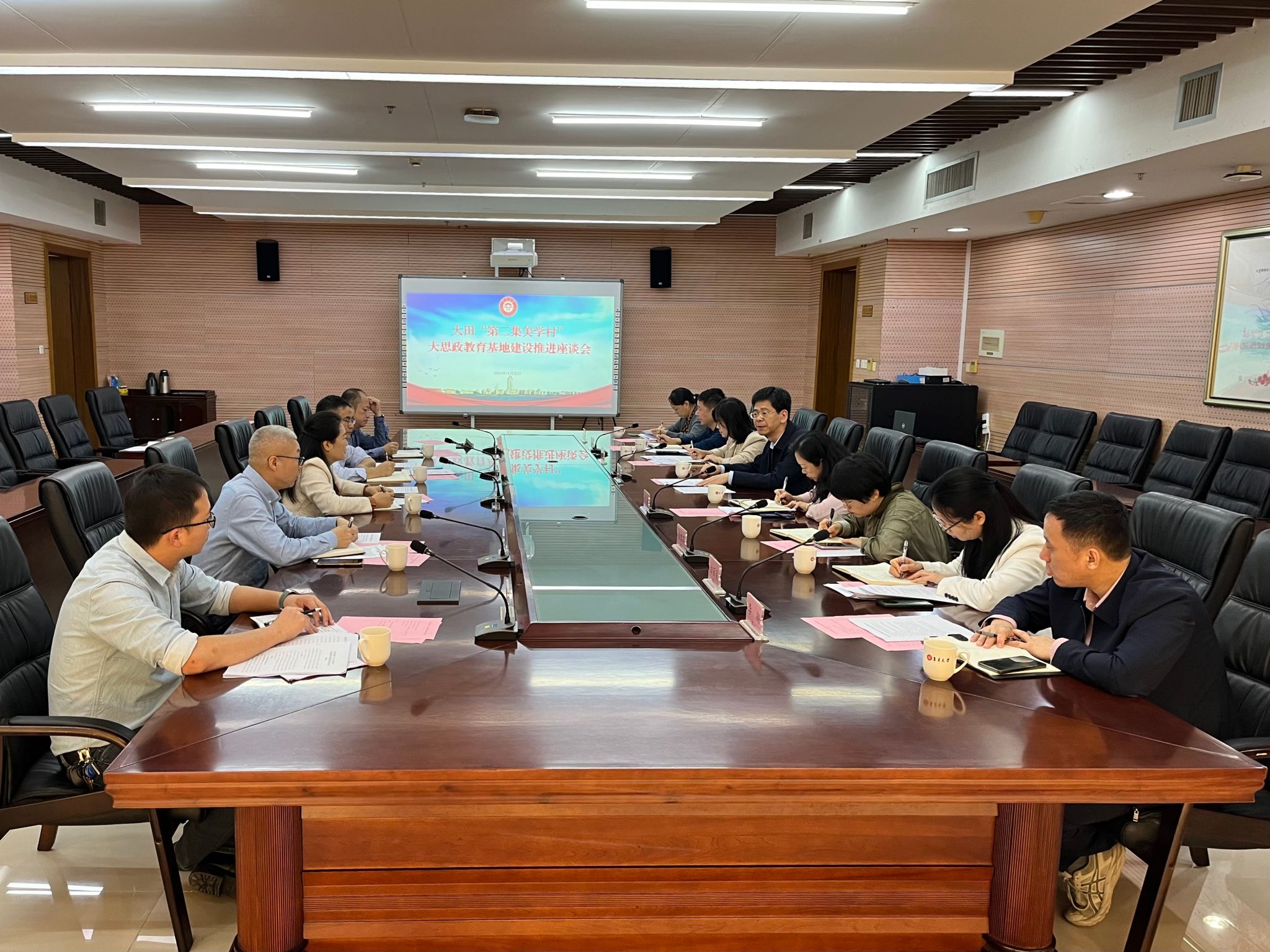 与会人员就推进“大思政课”实践教学基地建设进行探讨交流。会后,大田县委一行参观了校史馆。