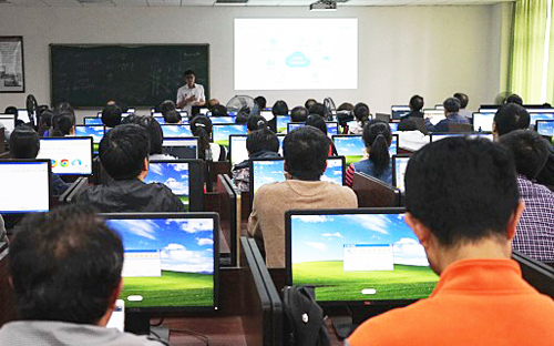 培训会上,王智谨详细介绍了“课堂派”这个以学生、老师、教务为中心,结合云端技术打造的学习、教学、社交一体化的学习管理平台;并现场演示了考勤、测试、互动和作业等功能,回答了现场老师提出的相关问题。