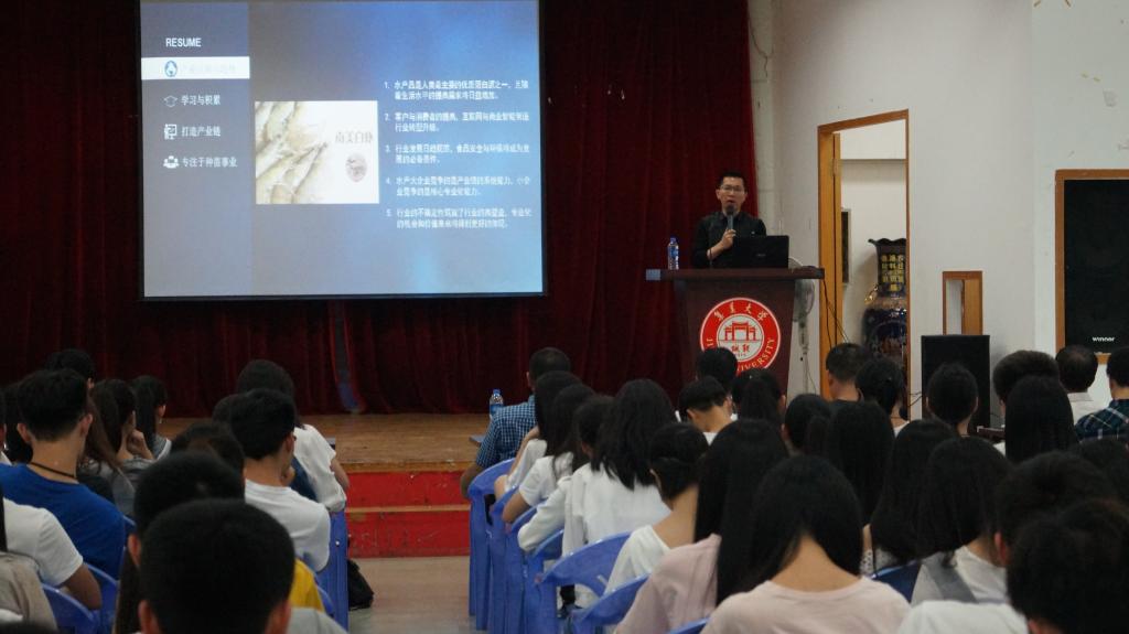 学院领导,诺可信生物科技有限公司副总经理、水产学院促进会副会长、1984级校友萧潮雄,海南宝莱海洋生物科技有限公司总经理、水产学院促进会海南分会会长、1985级校友冯尔吉等校友,及部分本科生代表参加了本次讲坛。