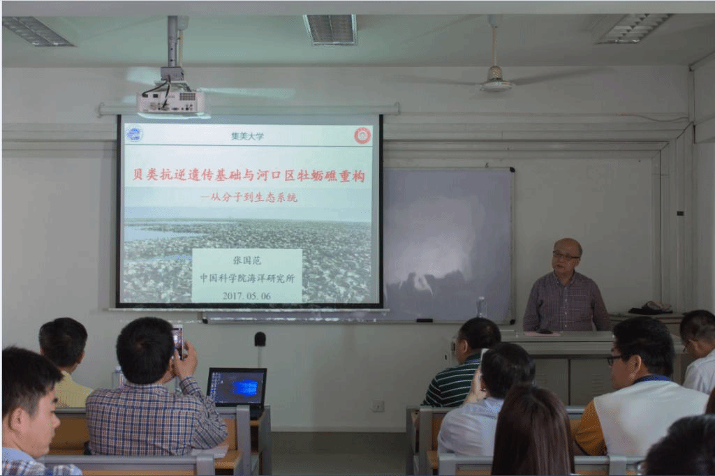 5月6日下午,中国科学院海洋研究所张国范研究员来我校水产学院进行学术交流,并在水产综合楼712教室做了题为“贝类抗逆遗传基础和牡蛎礁生态系统重构”的学术报告。学院师生近60人聆听了报告。
