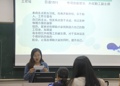 会上,学院学生会、自律会、社团联合会、勤工服务中心分别对过去一年来的工作进行了总结,并对各组织未来的发展进行展望;学院学生会、自律会、社团联合会、勤工服务中心竞选人员分别上台发表竞选演讲,阐述了对学生组织工作的认识和对今后工作的规划。最后,班委、学生干部投票。