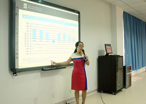 6月14日下午,财经学院举办嘉庚财经讲坛第14期教授论坛,澳大利亚西澳大学会计与金融系童一杏博士应邀做题为“研发与创新:会计与金融文献中的相关研究”的讲座。学院相关老师、研究生代表聆听了讲座。