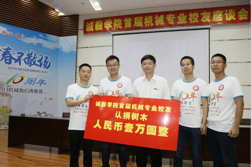 机械工程系有关领导介绍了机械工程系10年来的发展情况,希望校友们今后能把学习当成一种习惯,把感恩当成一种责任,把诚信当成一种实力,祝福校友今后的人生之路越走越辉煌。辅导员分别回忆了校友们在水上站临时校区和搬入新校区后的生活点滴,为校友们送上真挚的祝福。校友代表回忆过去在诚毅的点点滴滴,赞叹学校进步发展之快,感恩学院及老师们的辛勤付出。