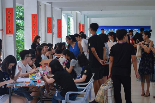 9月13日,文学院迎来了238名新生。线下“一站式”服务模式、线上迎新“潮”模式,文学院通过微信、微博、易班、短视频、花椒直播、荔枝FM电台等形式打造全媒体迎新现场,实现新生从扫码报到、领取校园卡、入住公寓等一体化便捷完成。