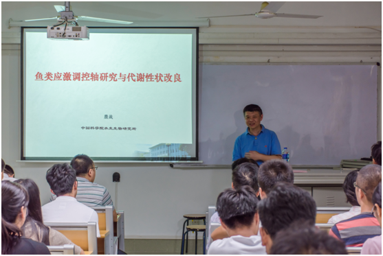 近日,中国科学院水生生物研究所殷战研究员来水产学院进行学术交流,并在水产综合楼712教室作了题为“鱼类应激调控轴研究与代谢性状改良”的学术报告。学院师生聆听了报告。