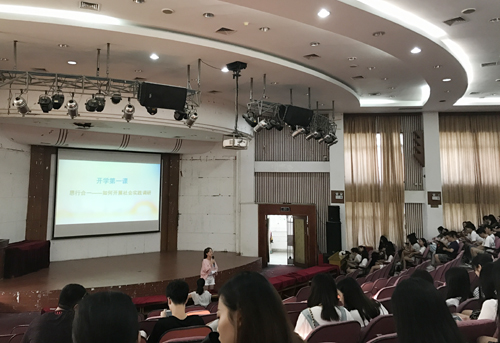 活动现场,学院三位优秀学生代表卢婉婷、胡嘉齐和刘晓颖为2015级和2016级全体同学分享如何开展社会实践以及参加金砖志愿者的感悟与体会。