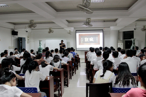 “闽海之滨有我集美乡,山明兮水秀,胜地冠南疆……”集美学校校歌拉开了讲座的序幕。讲座中,林斯丰详细生动地讲解了我校校史、校徽、校训,及校主陈嘉庚先生的创业历史、经营之道与用财之道、兴学动机、爱国行为等内容,让研究生新生对嘉庚精神的现实意义与深刻内涵有了更深入的了解。