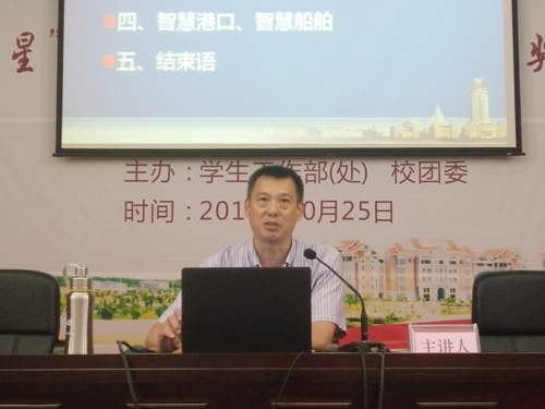 10月25日晚,航海学院院长邵哲平教授在尚大楼105学术报告厅,为我校师生做题为“学好专业知识适应国家发展战略要求”的专场讲座,全校500多名师生聆听了讲座。