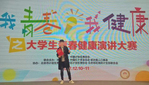 近日,“我青春,我健康”全国大学生青春健康演讲大赛全国复赛和总决赛在北京举行。我校外国语学院英语1612班学生骆昀成从66名省级预选赛优胜选手中脱颖而出进入全国复赛,以《孕你在心口难开》为题介绍了我国性教育现状,经过激烈的角逐,获得了比赛三等奖的好成绩。