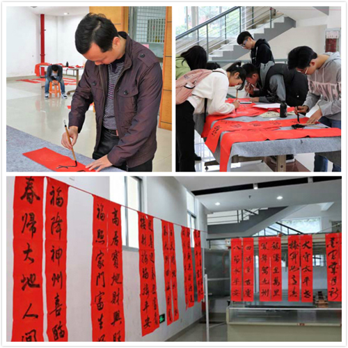 本次活动由学院书法协会和会计系学生会联合承办,包括教师作品展、学生优秀作品展、学生优秀作品投票、猜灯谜、剪窗花等多个环节。活动现场,学院师生泼墨挥毫,写下一幅幅春联,抒发了师生对传统文化的传承和热爱,及对美好新年的期许和祝愿。