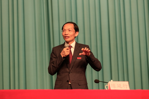 3月28日下午,我校迎校庆百名校友报告会(第八场)在诚毅影剧院举行,校友、罗普特(厦门)科技集团董事长陈延行应邀做题为“‘诚毅’是我人生的导师”主题报告。诚毅学院教职工及学生代表1200多人聆听了报告。