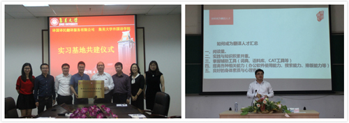 仪式上,双方领导分别讲话,并签约、互授牌匾。根据共建实习基地的协议,译国译民公司将为学院学生提供线上线下的翻译技能培训和良好的实战平台。