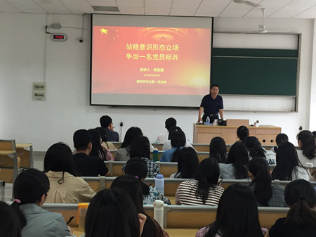 4月25日,理学院党委书记朱凤君为学生党员做题为《站稳意识形态立场,争当一名党员标兵》的党课。学院学生第一党支部全体党员及“大骨班”学生聆听了讲座。