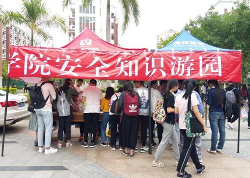 近日,工程技术学院在万人食堂前广场举办学生安全知识游园活动。