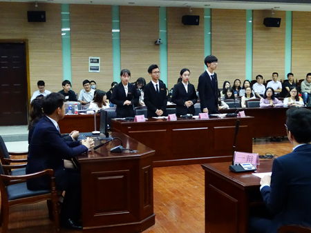 4月26日世界知识产权日,厦门市知识产权局、集美区科技局、法学院在我校模拟法庭联合举办2018“知行杯”知识产权辩论挑战赛,以促进法学院学生近距离学习知识产权前沿知识。