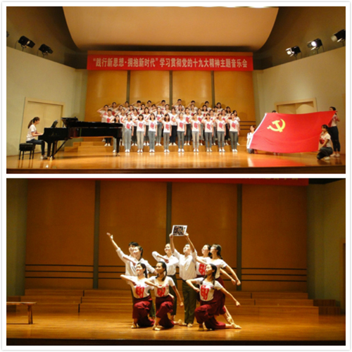 学院全体学生党员以一首激昂的合唱曲目《中国共产党入党誓词歌——我宣誓》拉开音乐会序幕。萨克斯四重奏《北京喜讯到边寨》、女生独唱《沁园春·雪》、古筝齐奏《井冈山上太阳红》、男声重唱《祖国不会忘记》、当代舞《芳华》等形式多样的节目紧扣主题、精彩纷呈,激励大家不忘初心,砥砺前行,继续前进,为实现中华民族伟大复兴的中国梦努力奋斗。音乐会在学院大海合唱团深情演绎的《我爱嘉庚星》的歌声中落下帷幕。