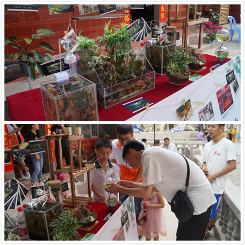 学院协会展出的作品集自然与艺术为一体,苔藓、水草、砂石、水族生物组成的水陆缸、微型缸和微景观,为现场观众带去一抹蔚蓝的凉意,吸引了众多游客和当地居民观看。