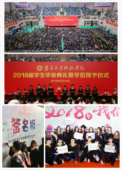 典礼开始前,在慷慨激昂的铜管乐队奏响的序曲中,学院毕业生们身着学士服在留言墙上签名留念,体育馆内播放的《2018再见诚毅》纪念视频勾起了大家对四年大学生活的美好回忆。