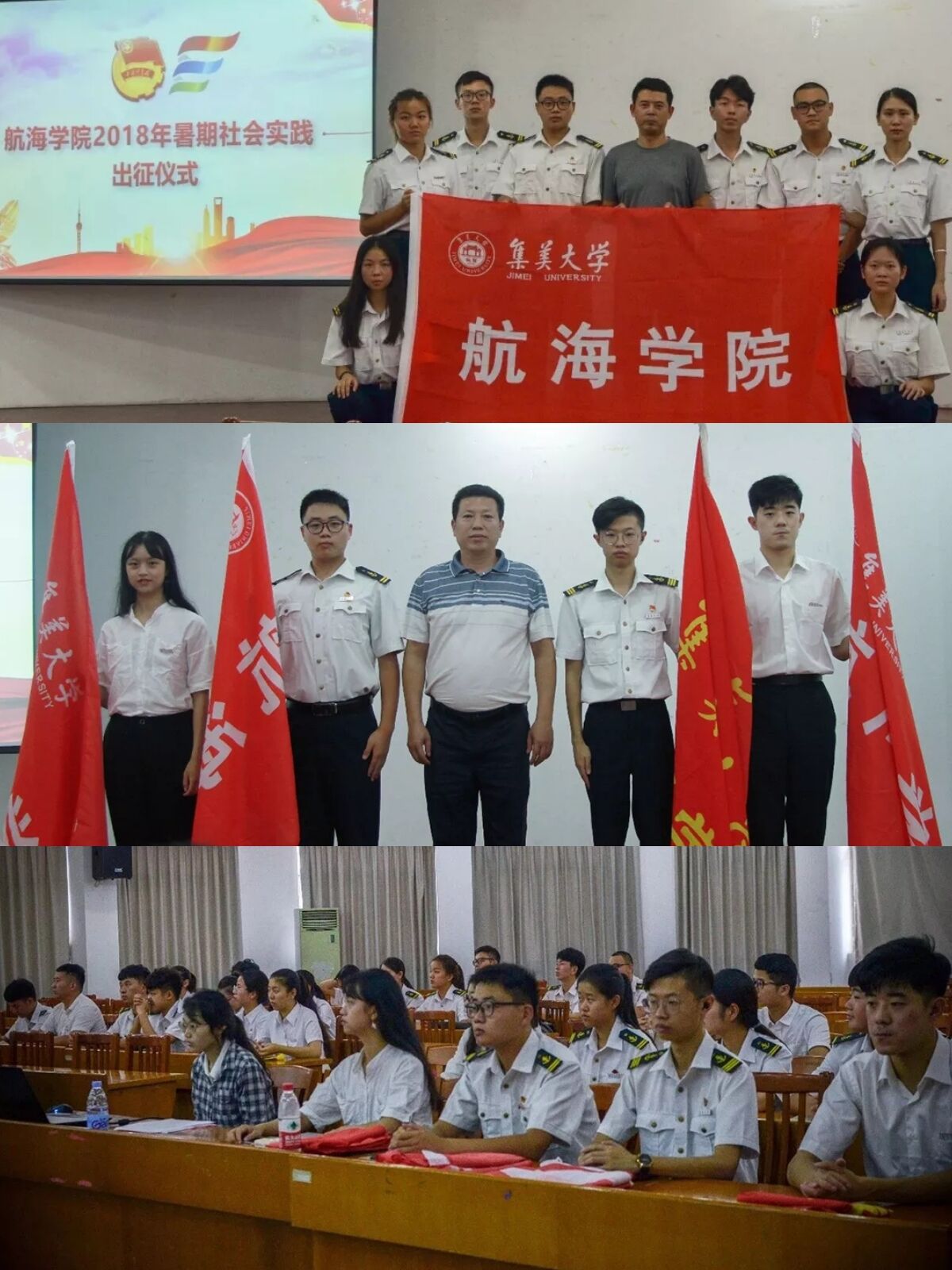 7月11日,航海学院举行2018年暑期“三下乡”社会实践活动出征仪式。航海学院党委副书记肖辉,暑期社会实践队带队老师和全体队员参加了仪式。