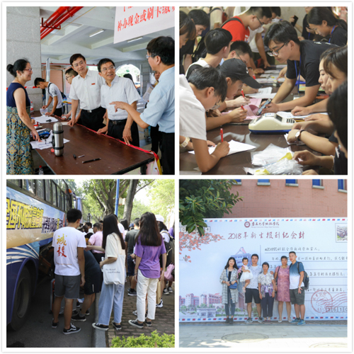 为做好迎新工作,学院今天停课,各部门、学生组织,共同承接迎新工作。学院学生会、自律会在新生报到窗口以及新生宿舍楼安排志愿者,负责新生报到的相关工作,帮助新生搬运行李、为他们指引路线。