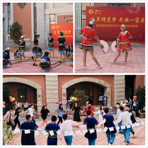 学校百年校庆期间,教师教育学院举办了“百年师范梦,民族一家亲”学生少数民族风情秀,学院少数民族预科班的同学们用独特的表演欢庆学校百年校庆,迎接回家的校友们。