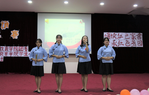 近日,教师教育学院举行“诵读红色家书,传承红色基因”主题朗诵比赛决赛。学院团委负责人、有关辅导员及各年级学生代表观看了比赛。