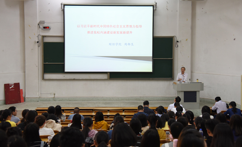 近日,财经学院原党委书记周邵生作“以习近平新时代中国特色社会主义思想为指导,推进我校内涵建设新发展新提升”的主题宣讲。学院相关老师及各学生支部党员、入党积极分子等参加了此次宣讲。