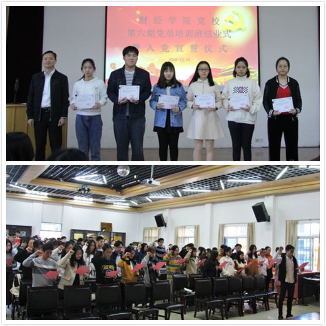 近日,财经学院在办公楼二楼多功能厅举办第六期党员培训班结业式暨入党宣誓仪式。学院党委副书记陈志鸿、党委有关人员、辅导员及全体培训班学员参加了结业式。