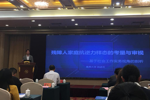 本次年会以“新时代中国特色社会主义:社会现代化与乡村振兴”为主题。会上,姚进忠做了题为《残疾人家庭抗逆力样态的考量与审视——基于社会工作实务视角的剖析》的主题报告,呈现了由其主持的国家社科研究的阶段性成果。由巨东红老师指导,陶才华和吴昊等学生撰写的论文《“互联网+社会工作”介入“大孩”问题的研究》荣获此次年会论文一等奖。