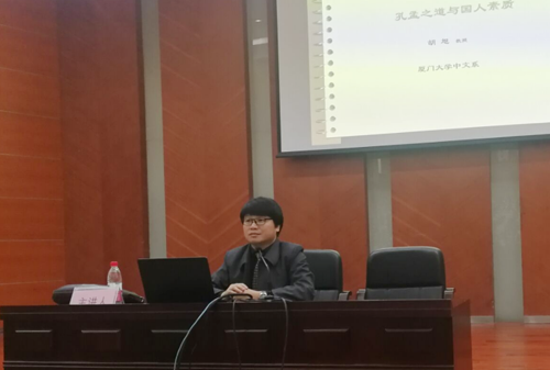 近日,厦门大学胡旭教授在尚大楼105报告厅为我校师生做题为“孔孟之道与国人素质”的专场讲座,全校500多名师生聆听了讲座。