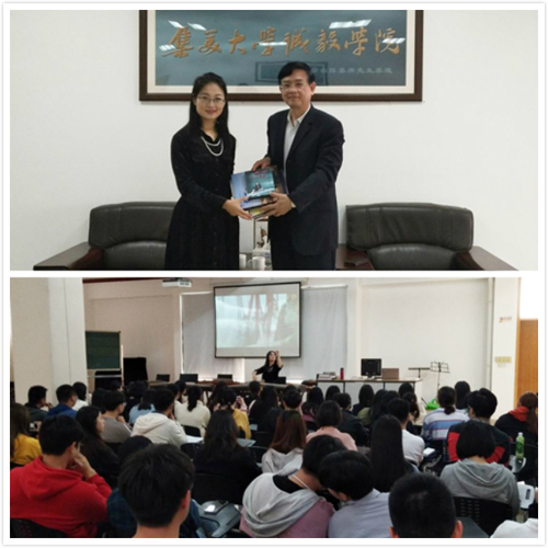 讲座结束后,学院院长叶光煌与姜淼一行进行座谈,学院对外交流合作部及音乐教研室相关人员参加了座谈。叶光煌对姜淼把民族音乐、高雅艺术带来学院表示感谢,希望中国东方乐团今后多为学院师生提供锻炼机会。姜淼表示,“让全球响起筝声”是自己义不容辞的责任,今后将深入课堂、培养新秀,并愿意用自己的新筝技法,帮助诚毅学子走出校园、走向更大的舞台。