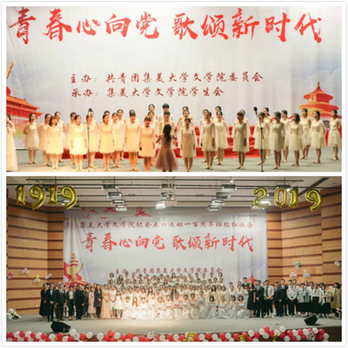 近日,文学院在月明楼报告厅举办了2019年“青春心向党,歌颂新时代”纪念五四运动一百周年班级红歌会决赛,以继承和弘扬五四精神,进一步团结动员广大学生努力学习,为实现“中国梦”贡献青春、智慧和力量。