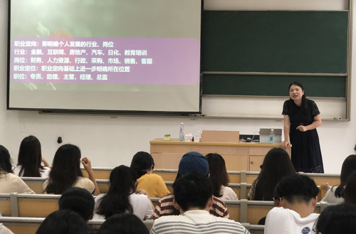 讲座中,王鹭婷从深入剖析自己、深入学习各行各业信息、人岗匹配三个步骤重点讲解了如何选定一个职业方向。王鹭婷建议,大家要行动于当下、不拖不等;人岗匹配要以客观条件为准、以兴趣爱好为参考;实现目标要武装自己、善用资源。