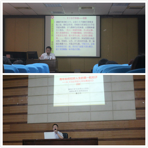 董立功以“青年如何扣好人生的第一粒扣子——从《习近平的七年知青岁月》谈起”为主题,讲述了习近平总书记的家庭家风教育及他在梁家河插队的七年知青岁月,期望学生们成为有理想、有本领、有担当的新青年。