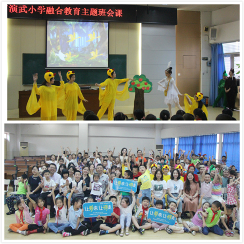 近日,教师教育学院教工第四党支部和学生第二党支部的党员、入党积极分子走进演武小学,开展“儿童‘关爱日’友爱校园行”活动,为演武小学一年级同学带去融合教育儿童剧《安妮的翅膀》表演。