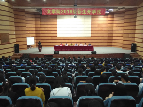 9月16日下午,文学院在月明楼报告厅举行2019级新生开学式暨第一堂思政课。学院党委书记宋水安、副院长李时学、教授代表、各教研室主任、各科室负责人、新生各班班主任、各年级辅导员出席了开学式。开学式由学院党委副书记陈娟主持。