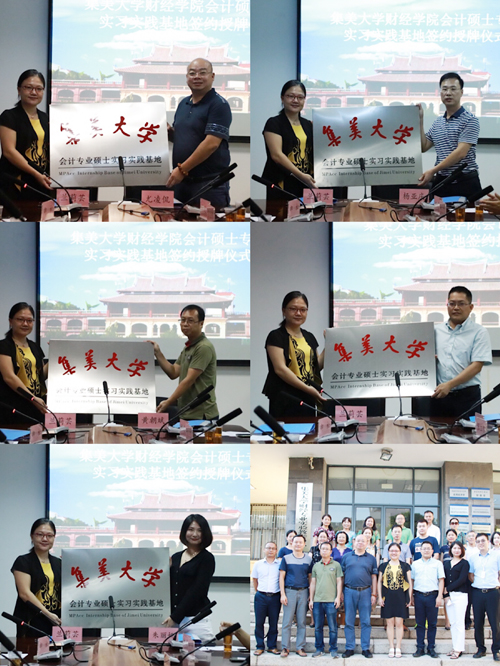 近日,财经学院举行会计专硕校外实习基地签约授牌仪式。学院领导,容诚会计师事务所厦门分所、利安达会计师事务所福建分所、百威(厦门)管理运营有限公司、厦门大治会计师事务所有限公司、厦门红大税务师事务所有限公司相关负责人,学院会计系老师、部分研究生参加了仪式。
