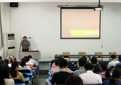 近日,体育学院召开“不忘初心、牢记使命”主题教育工作会议,会议由学院院长高楚兰主持。校“不忘初心、牢记使命”主题教育督导小组有关成员,学院全体师生党员参加会议。