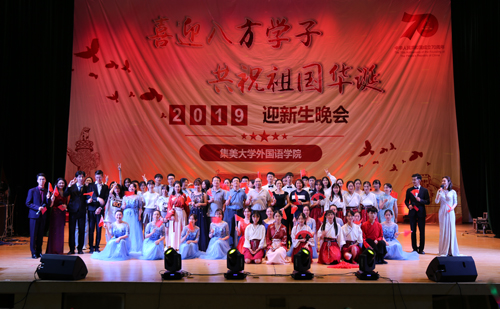 近日,外国语学院在古龙大礼堂举办庆祝新中国成立70周年迎新生文艺晚会。学院党委书记杨龙美、党委副书记陈雅珍,团委负责人、各年级辅导员、班主任及2019级全体新生观看了晚会。