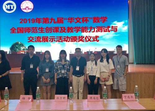 近日,第九届“华文杯”数学全国师范生创课及教学能力测试与交流展示活动在广西师范大学举行。我校理学院派出6名学科教学(数学)研究生,由朱福胜老师带队参赛,共取得二等奖3项、三等奖3项的佳绩,刘小辉、朱福胜两位老师获优秀指导教师。